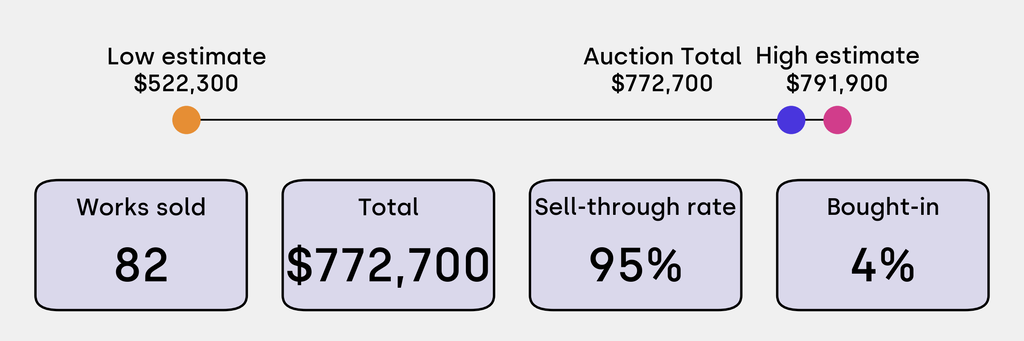 All results include the fees and premiums added to the price of a work of art when the auctioneer's hammer falls. Sale prices are compared to the auction house’s low estimate, which do not include premiums.