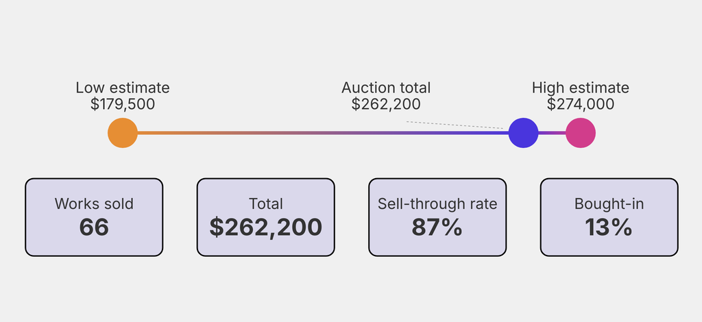 The star lot was: Joel Mesler, Sunset (2023), which sold for $31,000, 158% above its $12,000 low estimate.