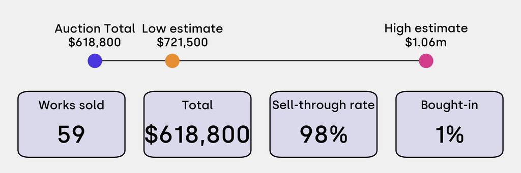 All results include the fees and premiums added to the price of a work of art when the auctioneer's hammer falls. Sale prices are compared to the auction house’s low estimate, which do not include premiums.