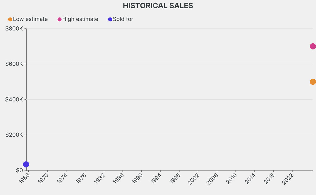 It last sold at auction in 1965 for $33,600 at Sotheby's.