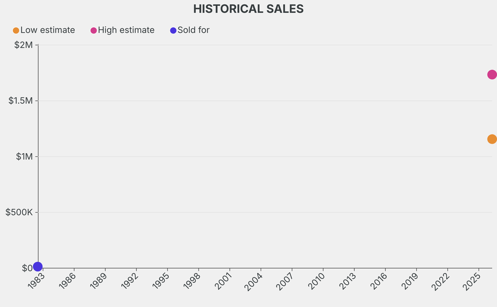 It last sold at auction in 1982 for $13,900 at Christie's.