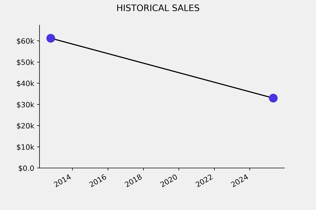 The sale was below the previous auction result by $28,300, realizing a 46% negative return. It last sold at auction in 2012 for $61,300 at Sotheby's.