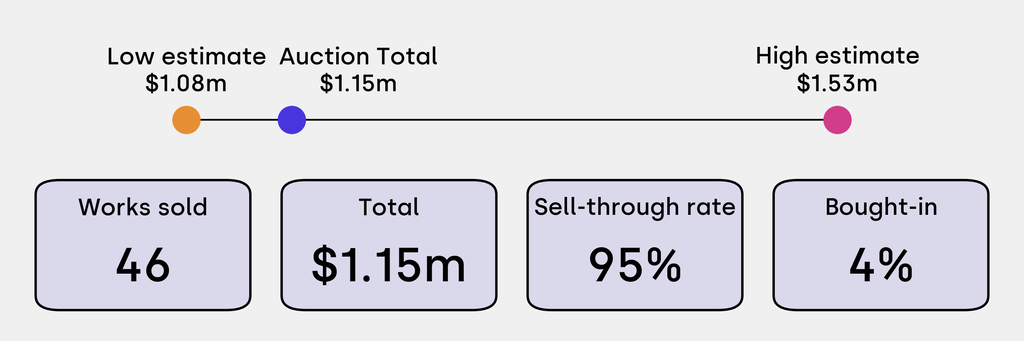 All results include the fees and premiums added to the price of a work of art when the auctioneer's hammer falls. Sale prices are compared to the auction house’s low estimate, which do not include premiums.