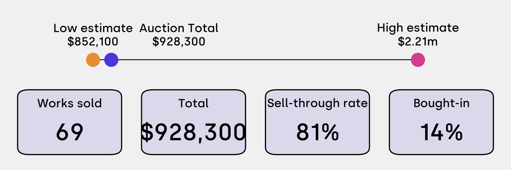 All results include the fees and premiums added to the price of a work of art when the auctioneer's hammer falls. Sale prices are compared to the auction house’s low estimate, which do not include premiums.