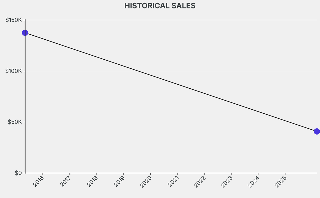 The sale was below the previous auction result by $96,800, realizing a 70% negative return. It last sold at auction in 2015 for $137,500 at Sotheby's.