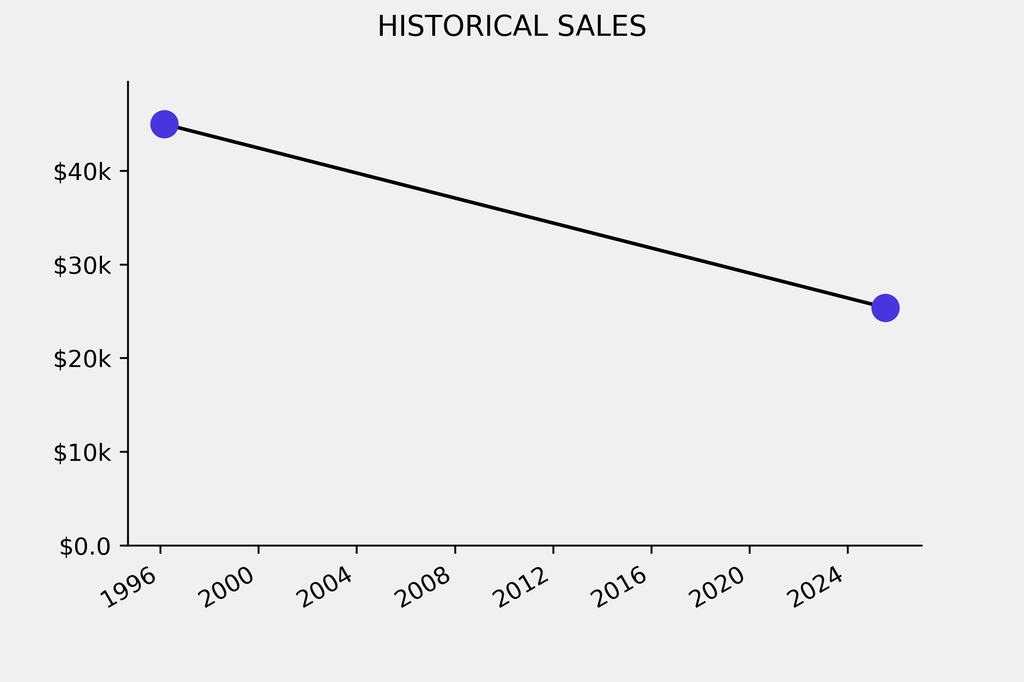The sale was below the previous auction result by $19,600, realizing a 43% negative return. It last sold at auction in 1996 for $45,000 at Sotheby's.