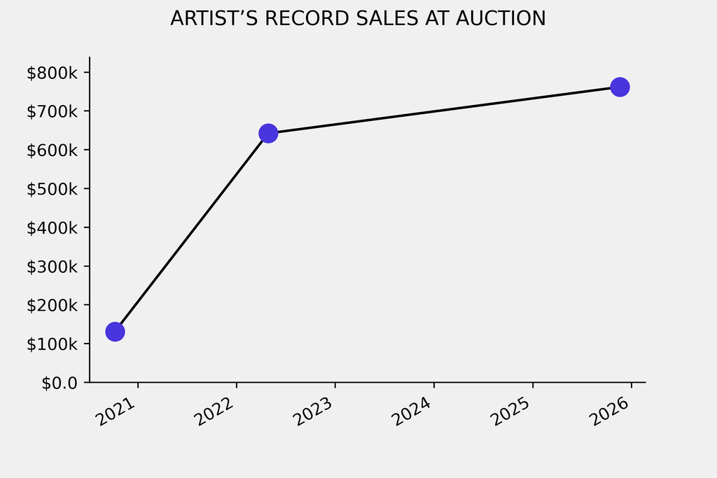 The sale beat the artist’s previous auction record by $119,700, a 18% rise.