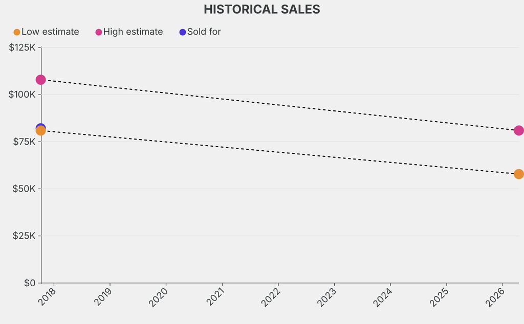 It last sold at auction in 2017 for $82,100 at Christie's. The current low estimate is 28% lower than its previous low estimate of $80,900.