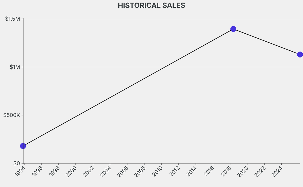 The sale was below the previous auction result by $264,700, realizing a 18% negative return. It last sold at auction in 2018 for $1.4m at Sotheby's.