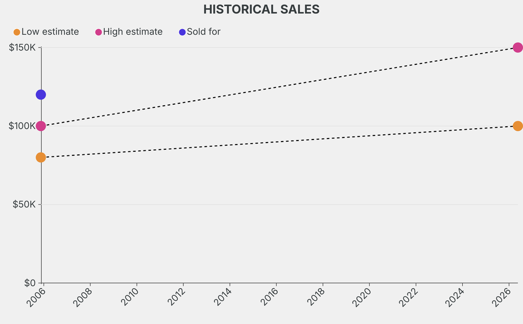 It last sold at auction in 2005 for $120,000 at Sotheby's. The current low estimate is 25% higher than its previous low estimate of $80,000.