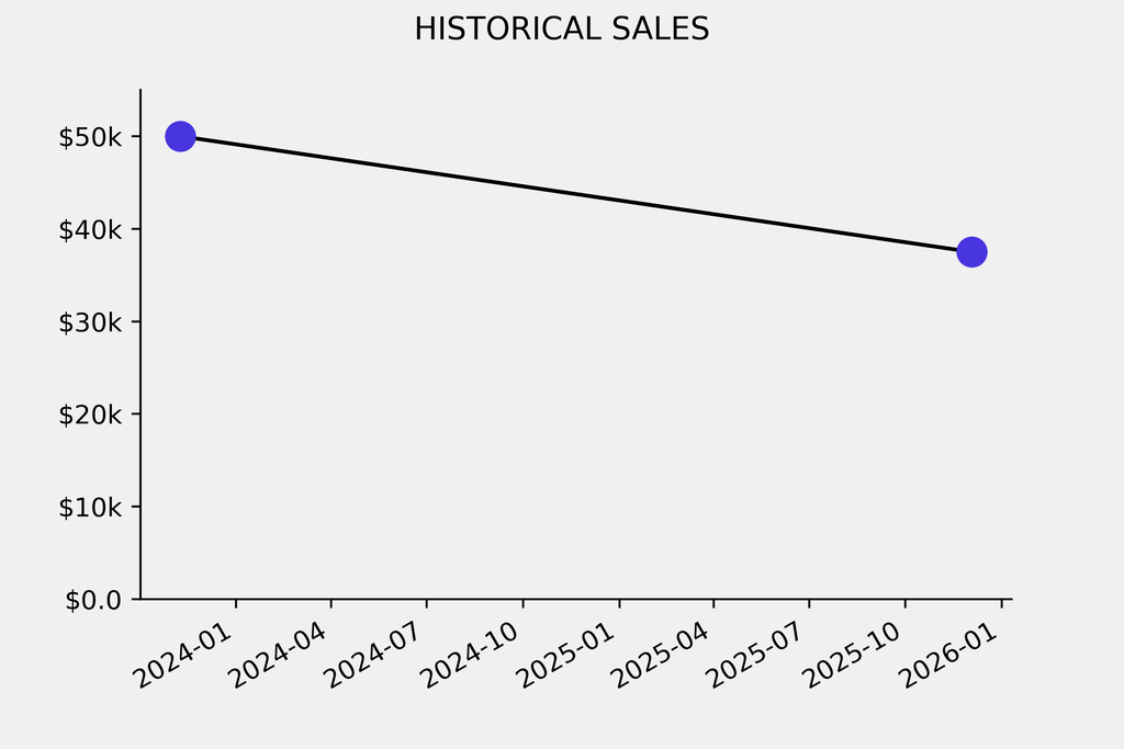 The sale was below the previous auction result by $12,500, realizing a 25% negative return. It last sold at auction in 2023 for $50,000 at Artnet Auctions.
