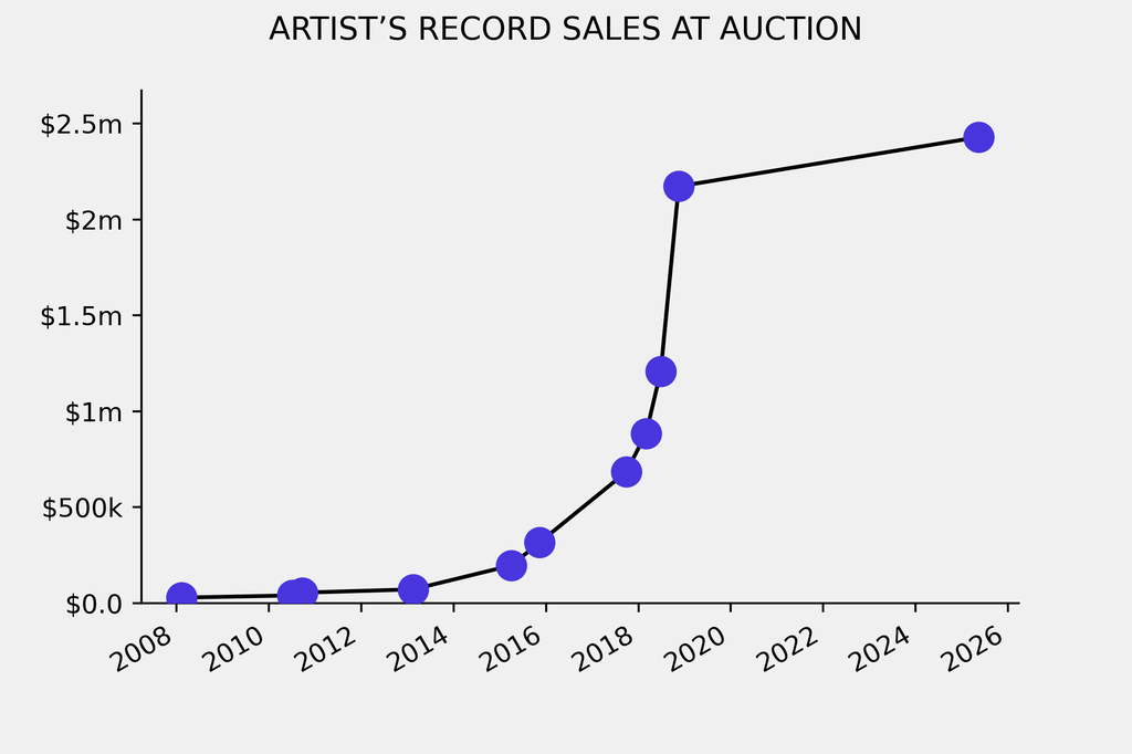The previous record was set by Lady Day II (1971), which sold for $2.17m at Christie's on November 15, 2018. The work had been traded 3 times in the past.