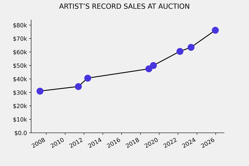 The sale beat the artist’s previous auction record by $12,700, a 19% rise.