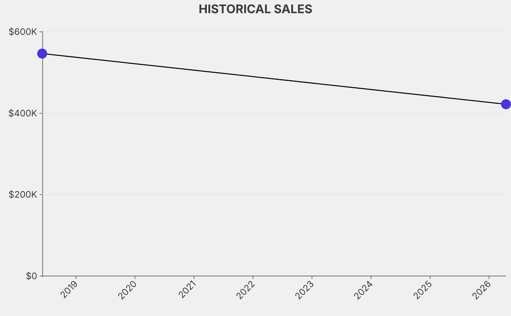 The sale was below the previous auction result by $124,400, realizing a 22% negative return. It last sold at auction in 2018 for $546,700 at Sotheby's.