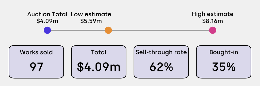 All results include the fees and premiums added to the price of a work of art when the auctioneer's hammer falls. Sale prices are compared to the auction house’s low estimate, which do not include premiums.