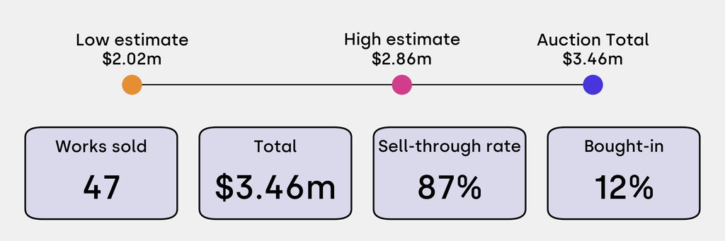 All results include the fees and premiums added to the price of a work of art when the auctioneer's hammer falls. Sale prices are compared to the auction house’s low estimate, which do not include premiums.