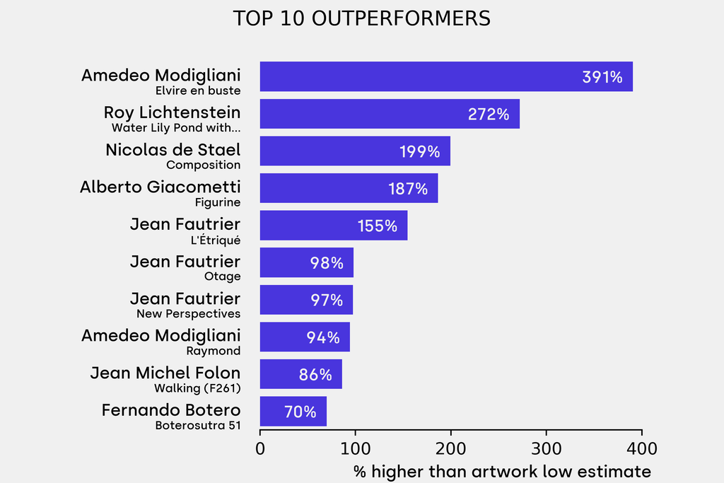 Modigliani's portrait of Elvire was also the sale's outperformer in terms of selling above its low estimate.