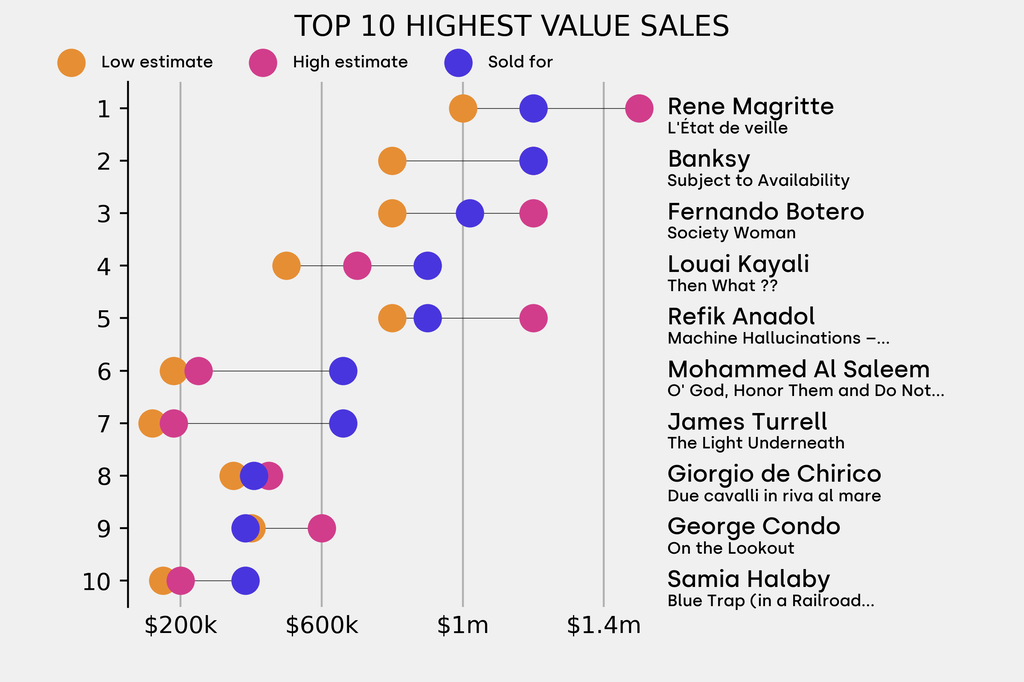 Breakdown of results against auction house estimates that are disclosed
