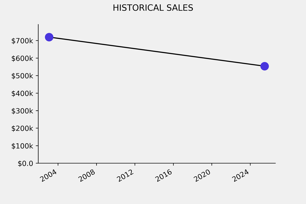 The sale was below the previous auction result by $165,900, realizing a 23% negative return. It last sold at auction in 2003 for $720,000 at Sotheby's.