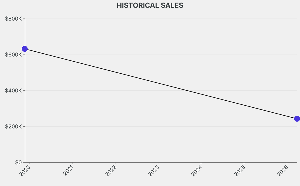 The sale was below the previous auction result by $389,300, realizing a 61% negative return. It last sold at auction in 2019 for $632,500 at Phillips.