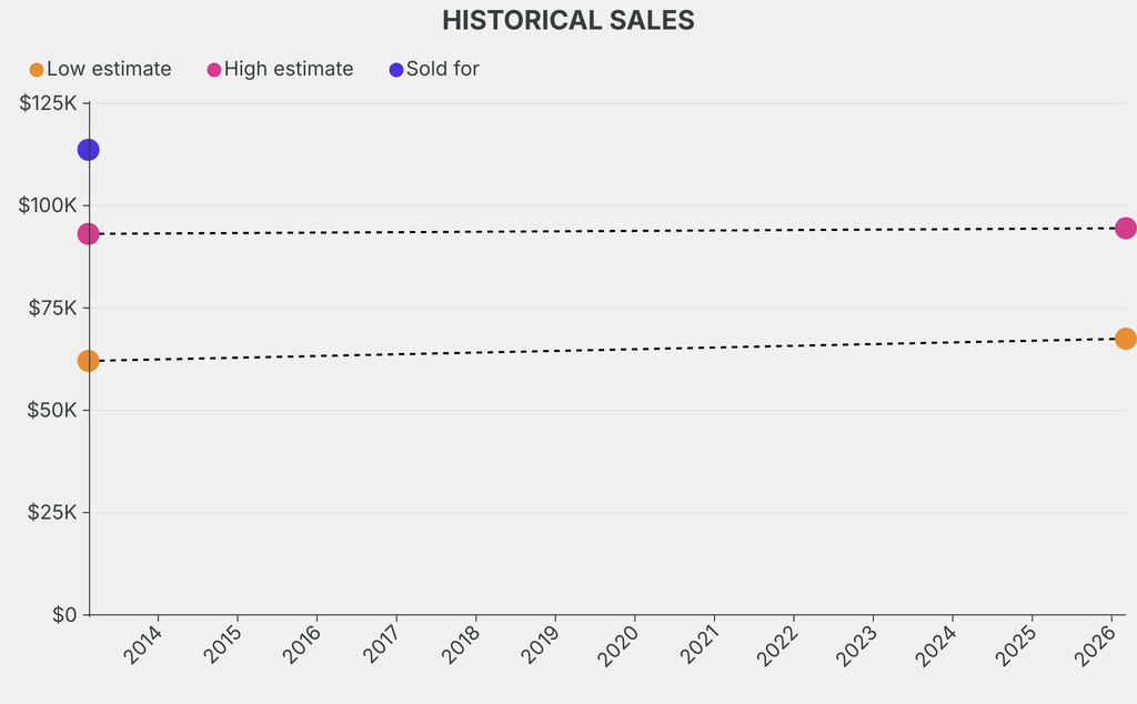 It last sold at auction in 2013 for $113,600 at Christie's. The current low estimate is 8% higher than its previous low estimate of $62,100.