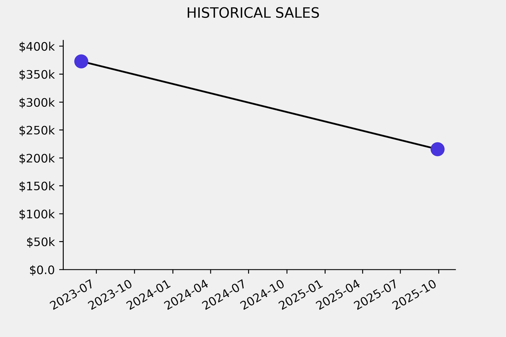 The sale was below the previous auction result by $157,500, realizing a 42% negative return. It last sold at auction in 2023 for $373,100 at Phillips.