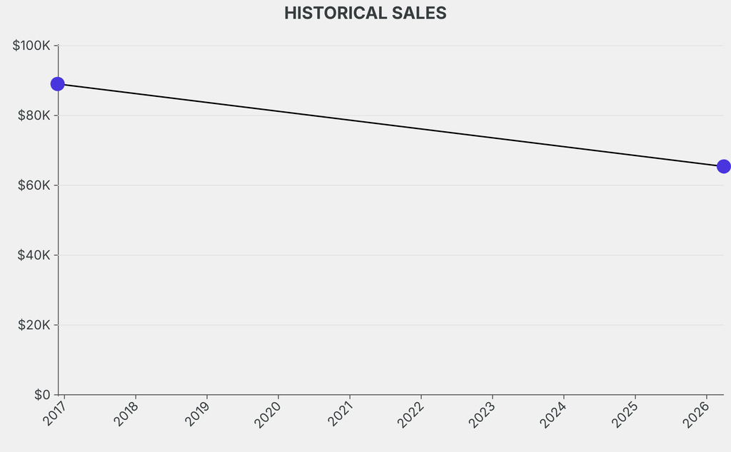 The sale was below the previous auction result by $23,600, realizing a 26% negative return. It last sold at auction in 2016 for $89,000 at Christie's.
