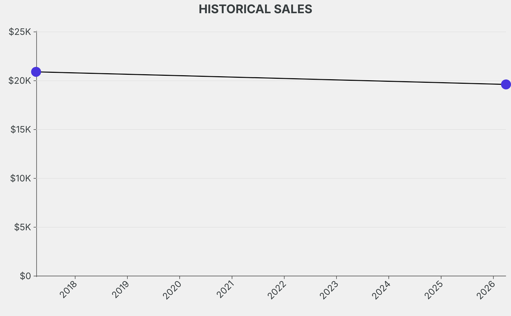 The sale was below the previous auction result by $1,290, realizing a 6% negative return. It last sold at auction in 2017 for $20,900 at Sotheby's.