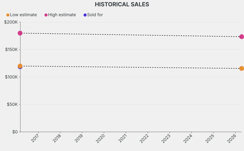 It last sold at auction in 2016 for $118,800 at Sotheby's. The current low estimate is 3% lower than its previous low estimate of $120,000.