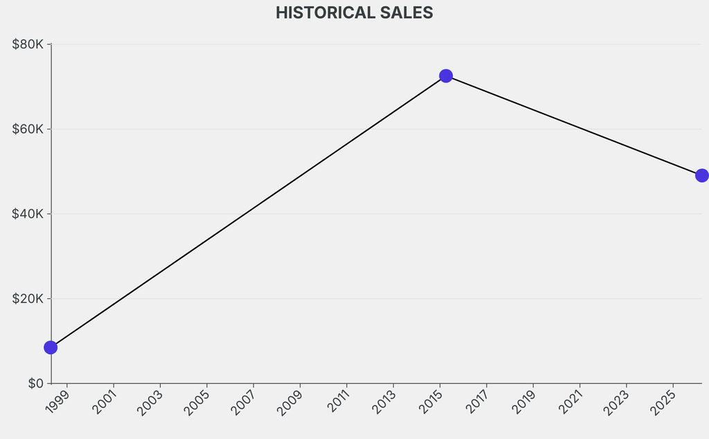 The sale was below the previous auction result by $23,500, realizing a 32% negative return. It last sold at auction in 2015 for $72,600 at Sotheby's.