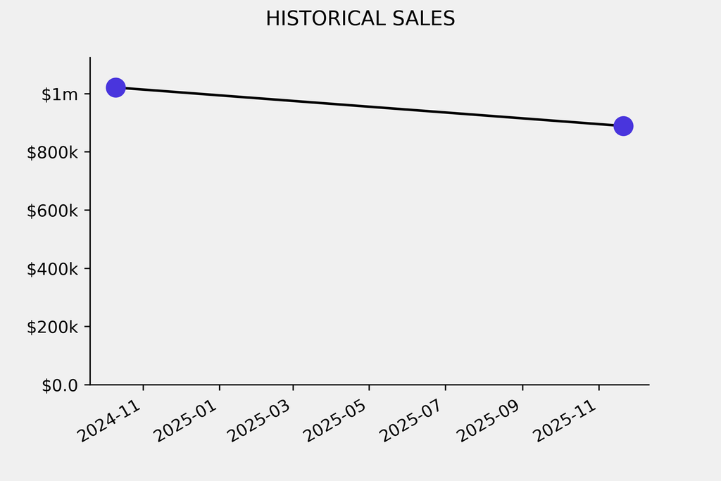 The sale was below the previous auction result by $132,400, realizing a 12% negative return. It last sold at auction in 2024 for $1.02m at Christie's.