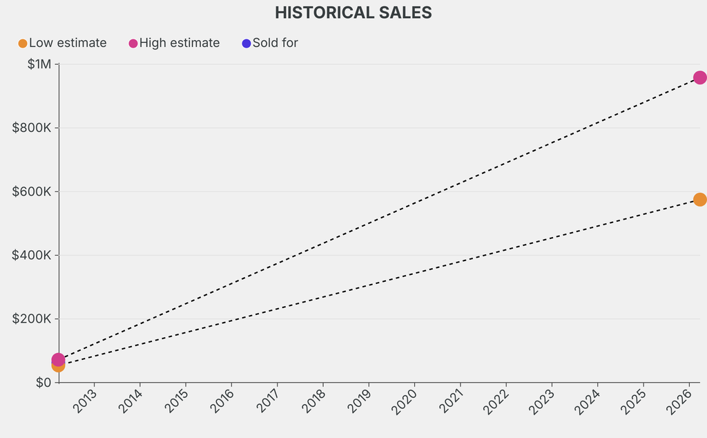 It last sold at auction in 2012 for $61,700 at Seoul Auction. The current low estimate is 966% higher than its previous low estimate of $53,900.
