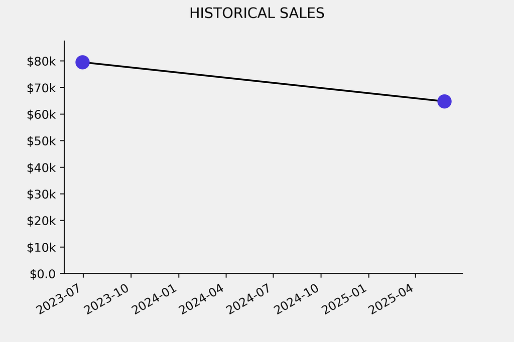 The sale was below the previous auction result by $14,700, realizing a 18% negative return. It last sold at auction in 2023 for $79,600 at Christie's.