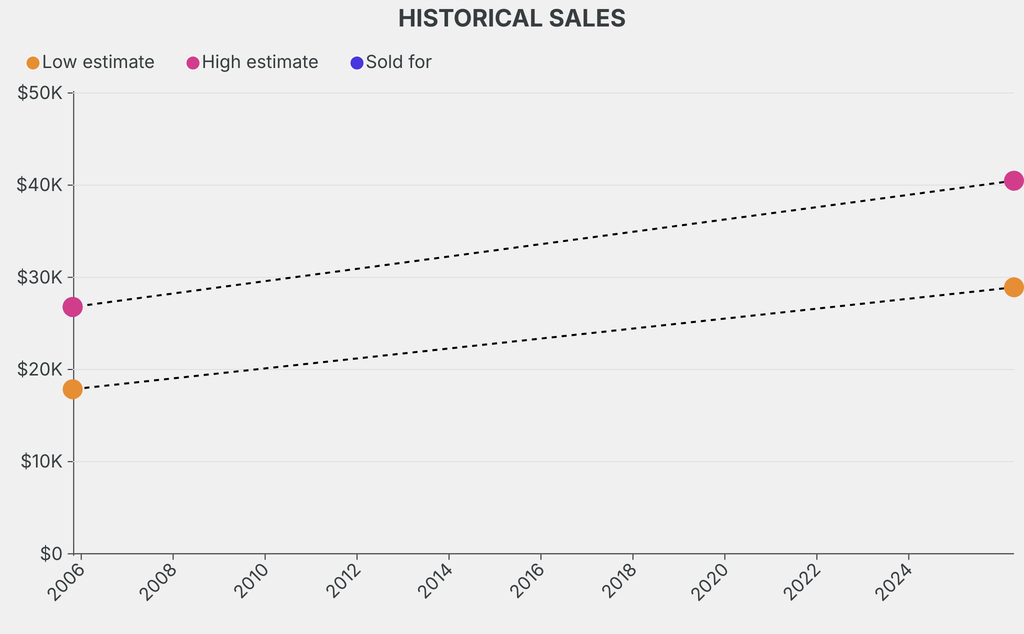 It last sold at auction in 2005 for $26,800 at Sotheby's. The current low estimate is 61% higher than its previous low estimate of $17,900.