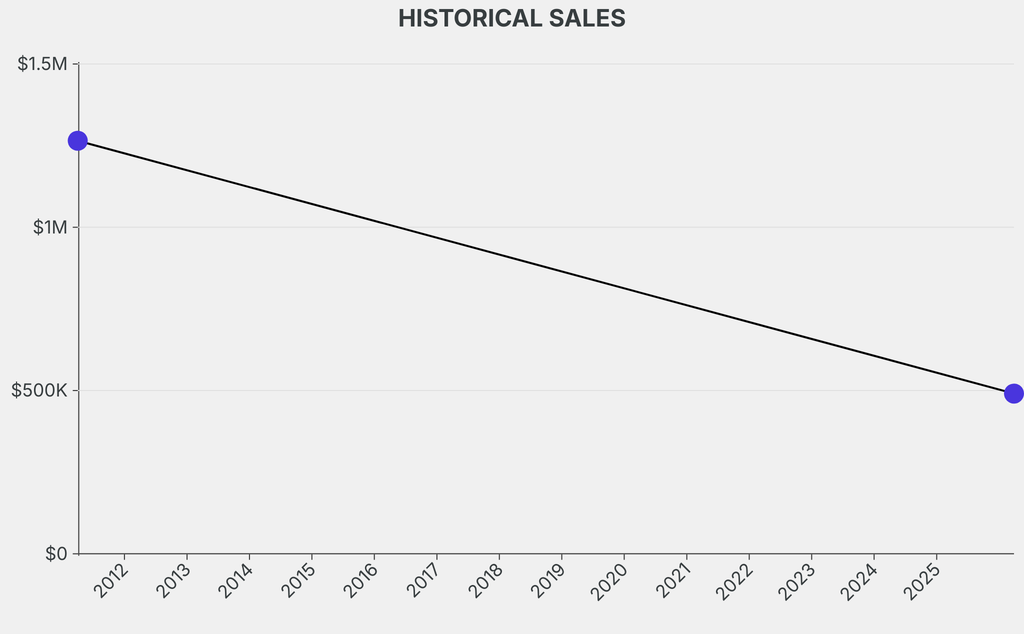 The sale was below the previous auction result by $774,300, realizing a 61% negative return. It last sold at auction in 2011 for $1.26m at Sotheby's.