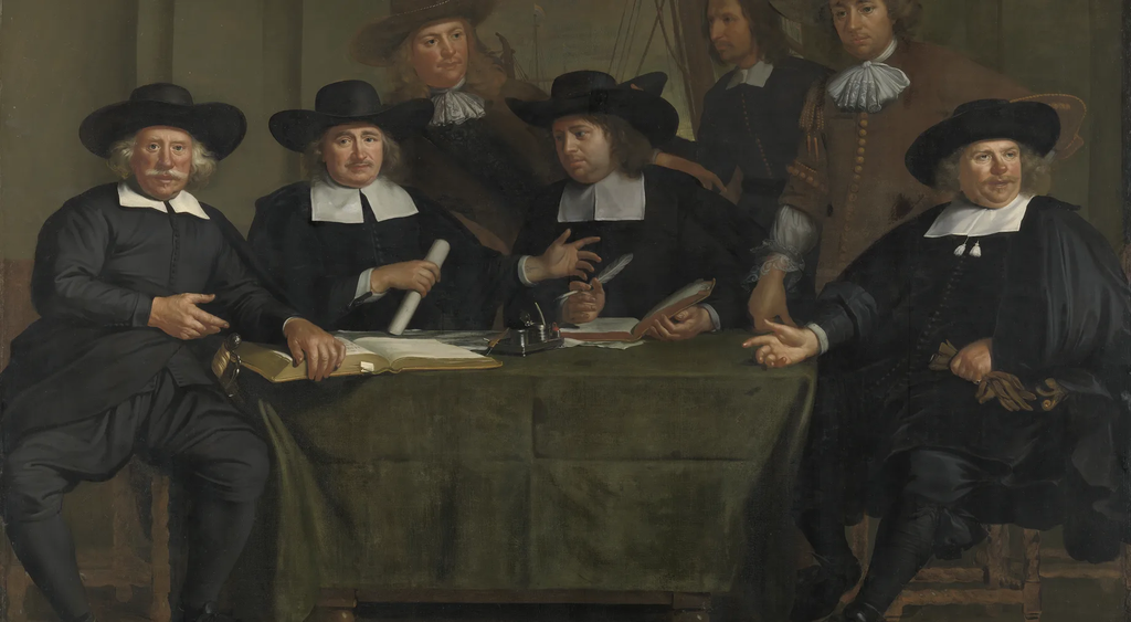 The 1674 work, believed to be by Dutch painter Wallerant Vaillant, shows a group of merchants including Wessel Smits whose sleeve is pulled up revealing the image of a comet inked on his wrist.