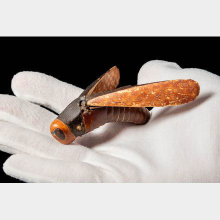 Talk of tomb-robbing and potential curses did not put off one bidder who spent almost half a million dollars yesterday on a tiny wood and ivory grasshopper.