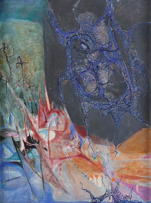 Rafa Macarron, Untitled (2008), $30,800 to $45,000 estimate is due to be sold at Phillips Modern & Contemporary Art: Online Auction, Hong Kong on December 11, 2025. Mixed media on canvas, 100.0 x 243.0cm. The work has not been traded before.