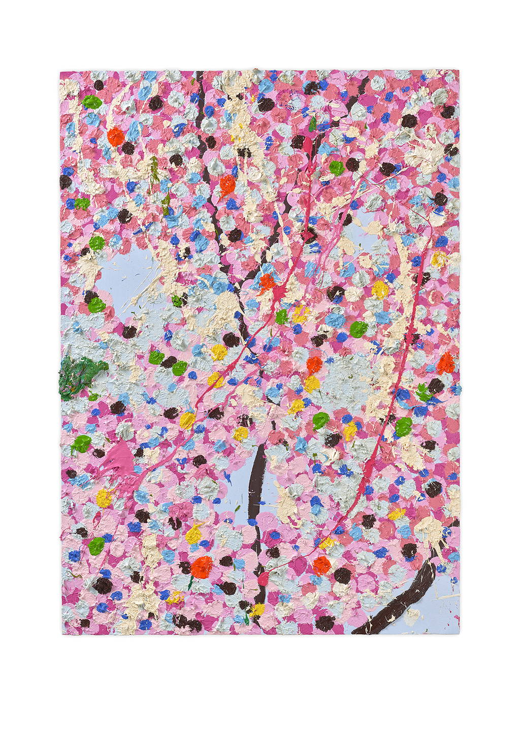 Paper Blossoms is a series of 900 unique original paintings on card featuring the vibrant imagery of Hirst's Cherry Blossoms paintings.