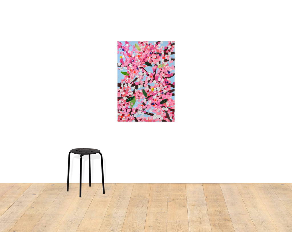 Paper Blossoms is a series of 900 unique original paintings on card featuring the vibrant imagery of Hirst's Cherry Blossoms paintings.