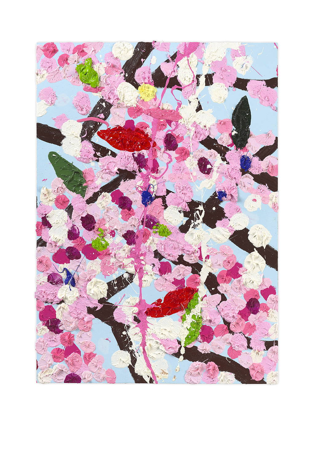 Paper Blossoms is a series of 900 unique original paintings on card featuring the vibrant imagery of Hirst's Cherry Blossoms paintings.