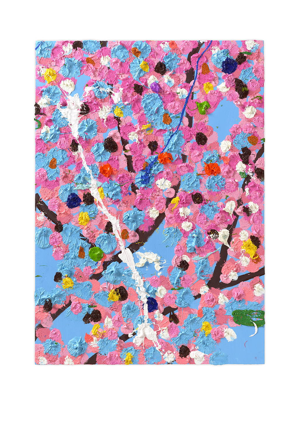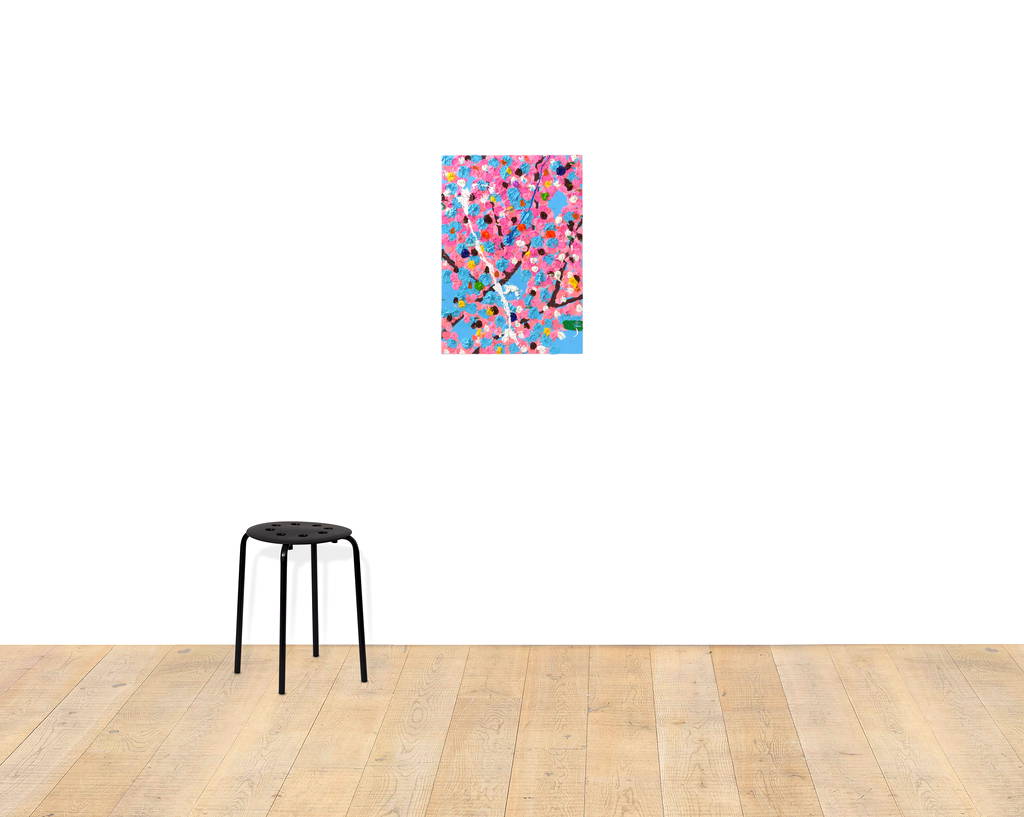 Paper Blossoms is a series of 900 unique original paintings on card featuring the vibrant imagery of Hirst's Cherry Blossoms paintings.
