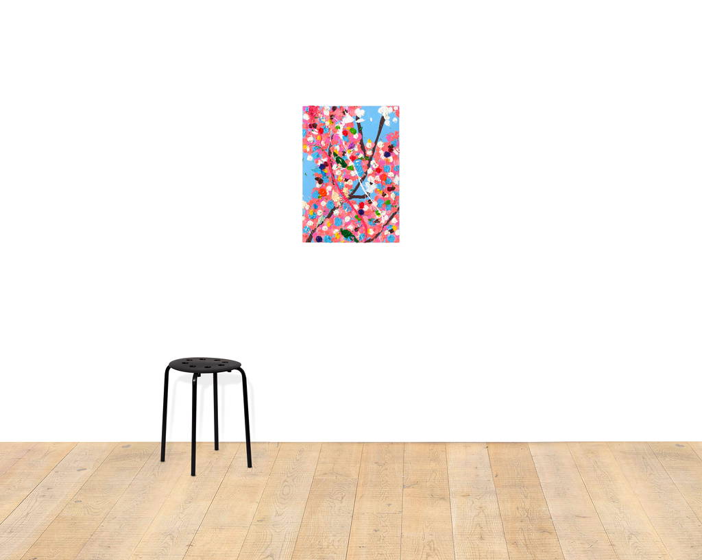 Paper Blossoms is a series of 900 unique original paintings on card featuring the vibrant imagery of Hirst's Cherry Blossoms paintings.