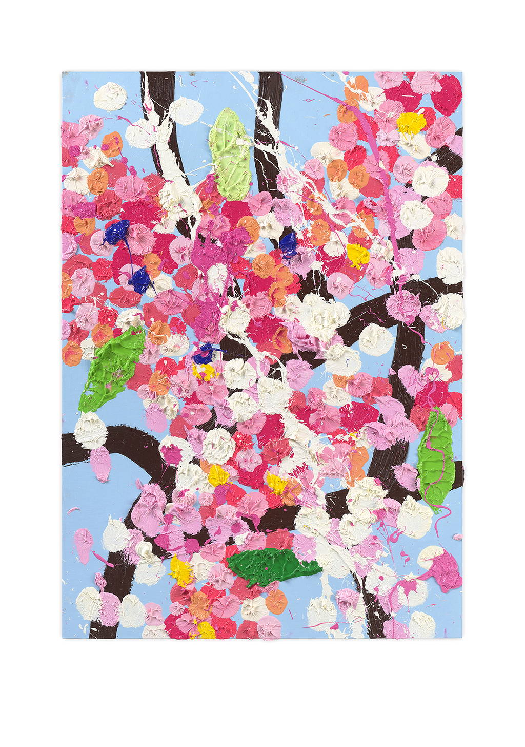Paper Blossoms is a series of 900 unique original paintings on card featuring the vibrant imagery of Hirst's Cherry Blossoms paintings.