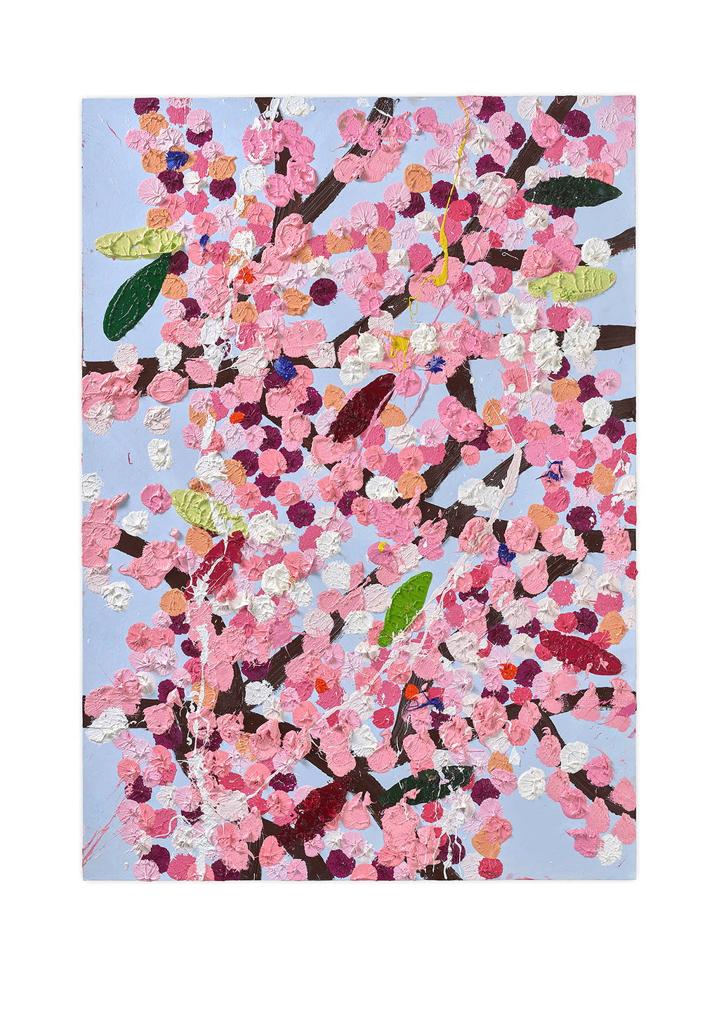 Paper Blossoms is a series of 900 unique original paintings on card featuring the vibrant imagery of Hirst's Cherry Blossoms paintings.