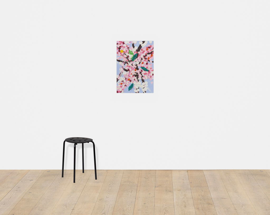 Paper Blossoms is a series of 900 unique original paintings on card featuring the vibrant imagery of Hirst's Cherry Blossoms paintings.