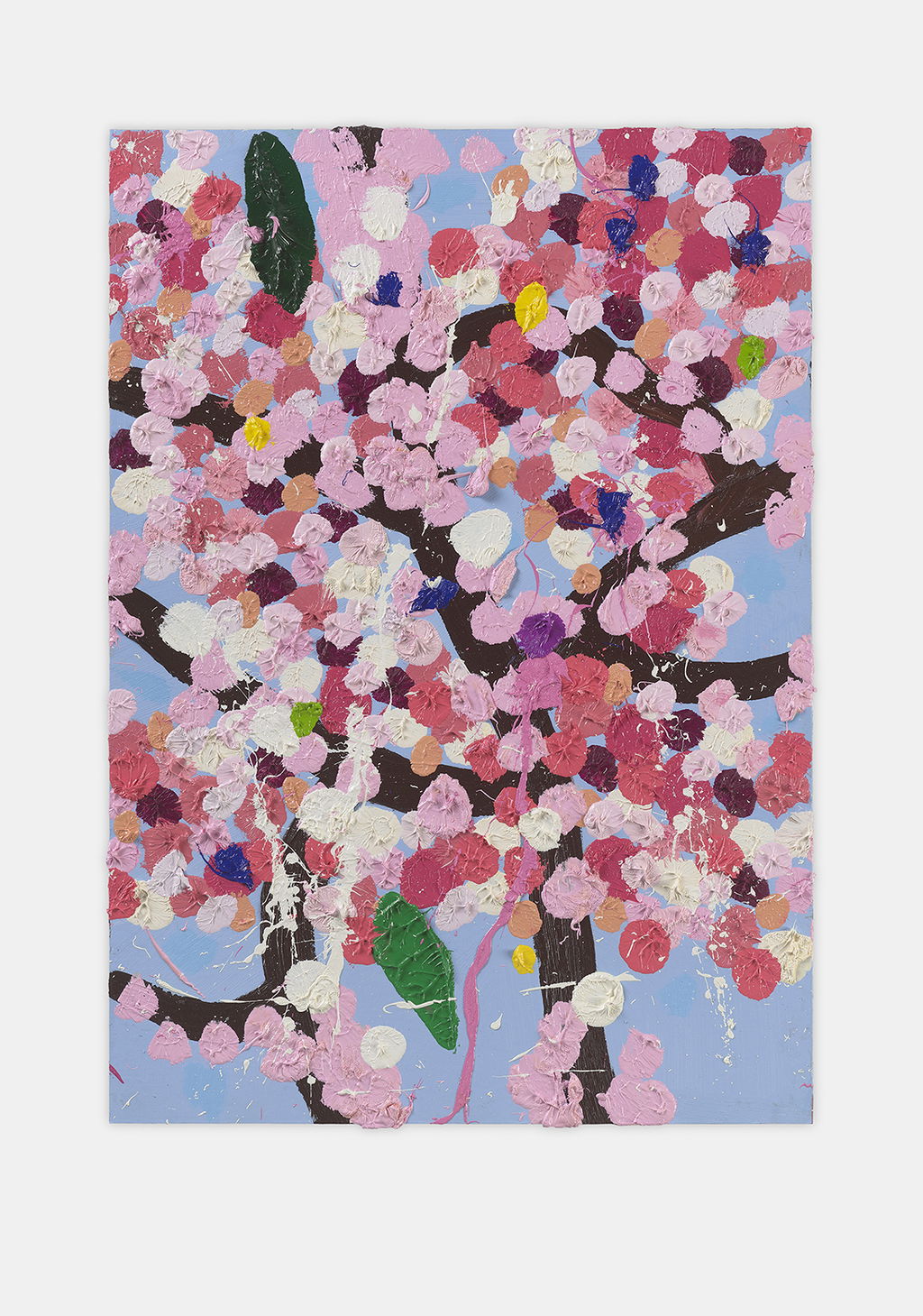 Paper Blossoms is a series of 900 unique original paintings on card featuring the vibrant imagery of Hirst's Cherry Blossoms paintings.