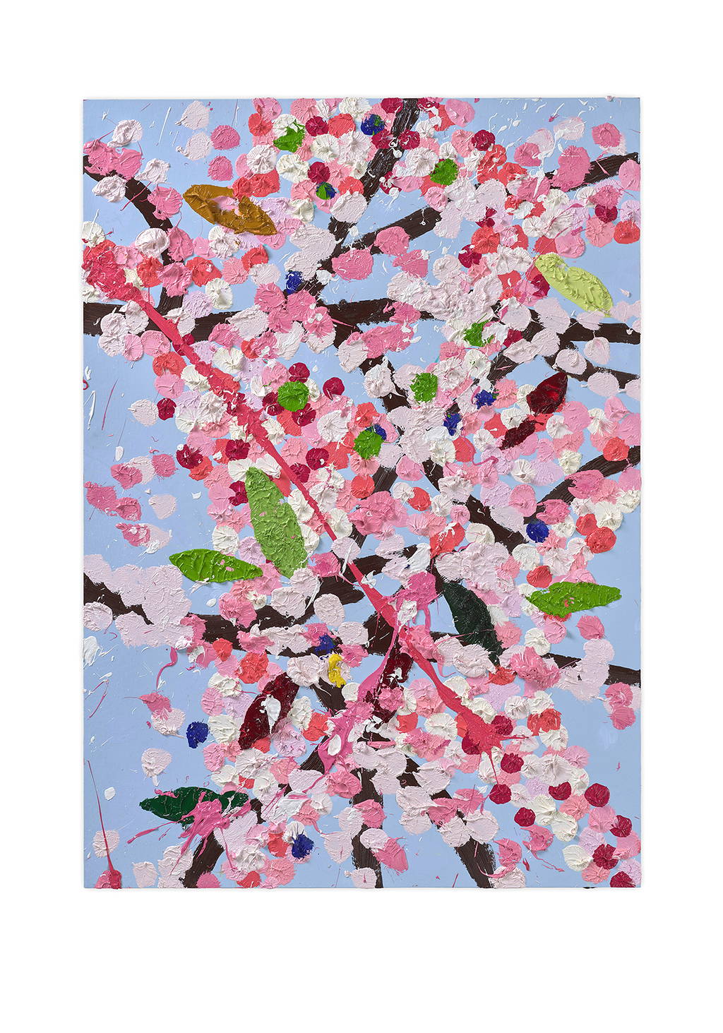 Paper Blossoms is a series of 900 unique original paintings on card featuring the vibrant imagery of Hirst's Cherry Blossoms paintings.