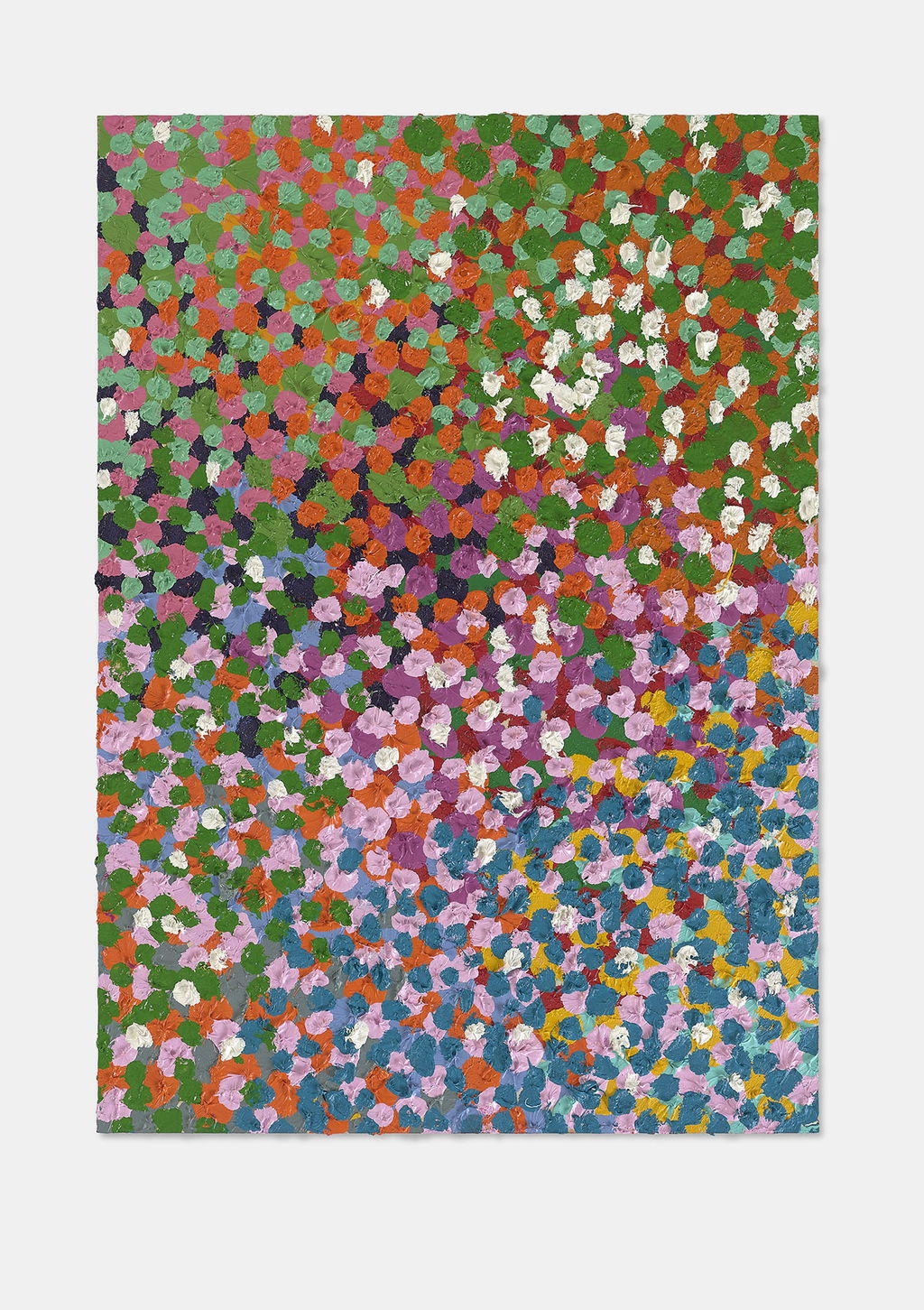 The Paper Veils are a series of 300 striking paintings on card completed in 2019, and available in two sizes. These paintings are a riotous ensemble of energetically coloured and thickly painted dots. Across each composition, Hirst revels in the joy of colour and the physicality of paint.