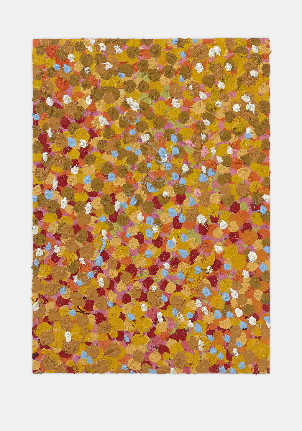 The Paper Veils are a series of 300 striking paintings on card completed in 2019, and available in two sizes. These paintings are a riotous ensemble of energetically coloured and thickly painted dots. Across each composition, Hirst revels in the joy of colour and the physicality of paint.